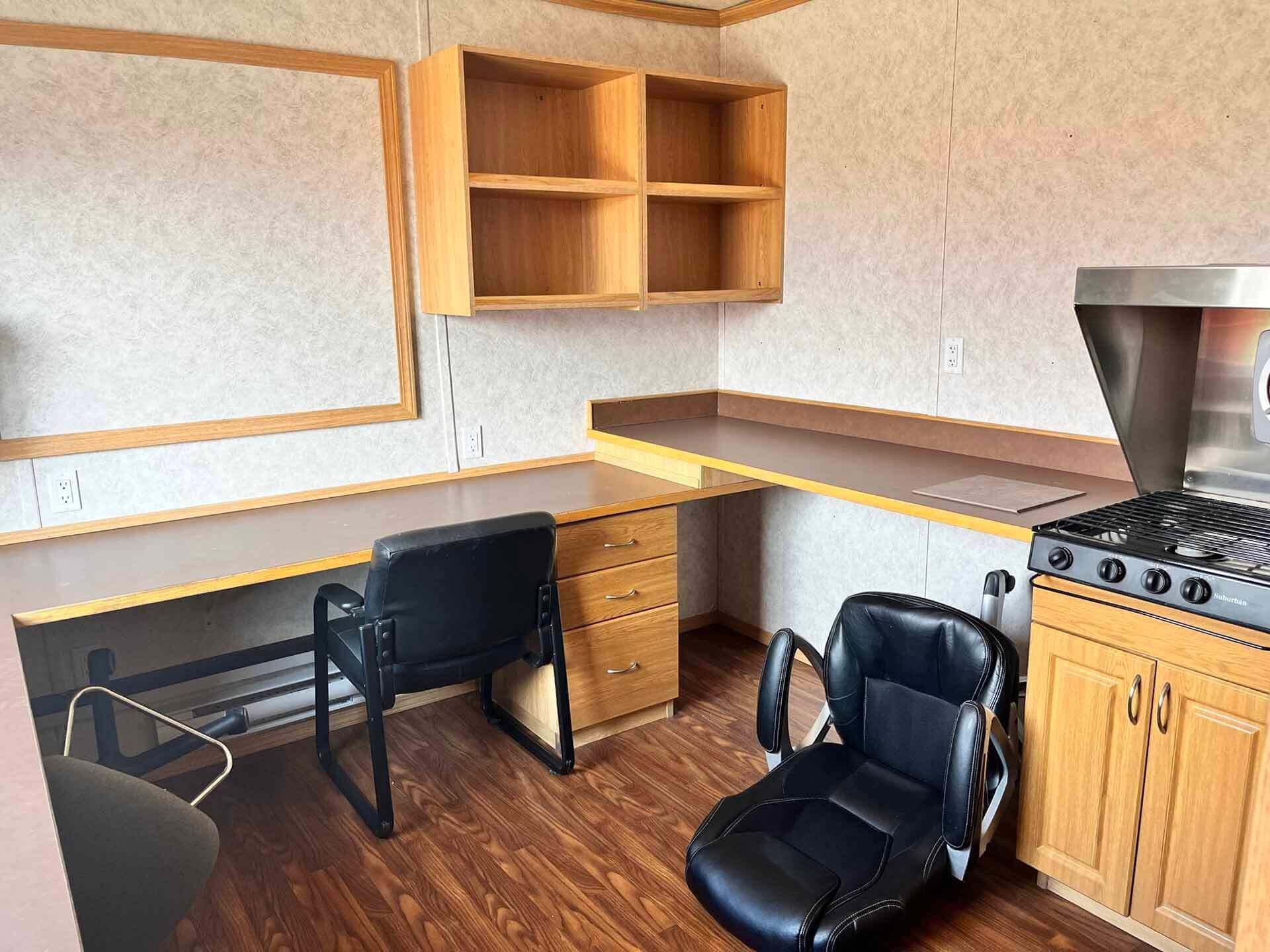 Traveling back through the kitchen office, past the two-piece washroom, mechanical room and you get to the far left office. This office has a perimeter built in desks. Larger stainless sink. Stove top with fume hood. Tv receptacles are plumbed throughout the offices. Two 380-liter propane bottles feed the furnace, hot water tank and stove appliances. The relationship does not end with the sale.