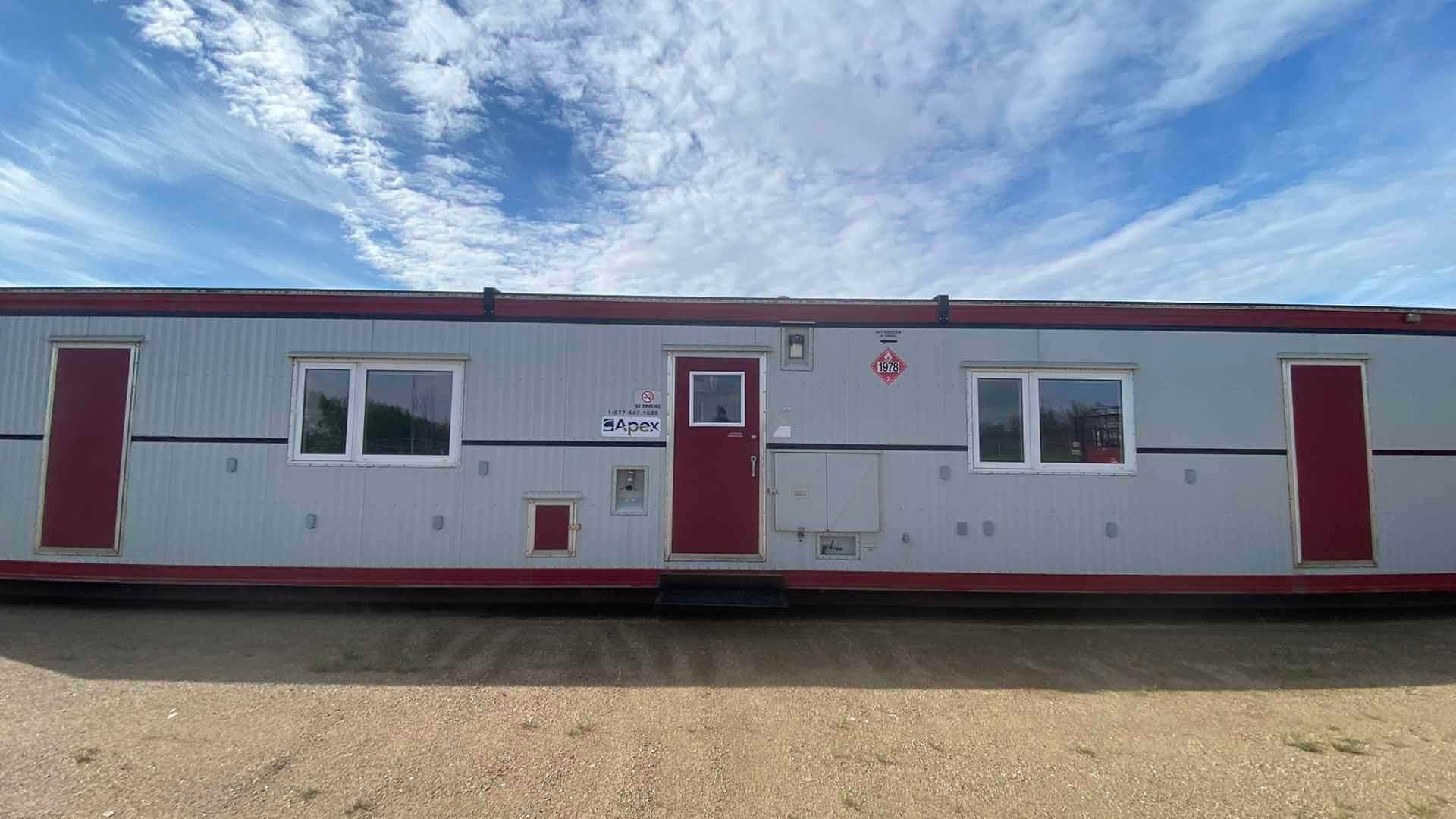 This 2011 Gateway portable Accommodation Trailer shows very well. The mechanical room has 400 gallon fresh water tank, hot water tank, water pump furnace, laundry center, central vacuum and forced air propane furnace with a/c.