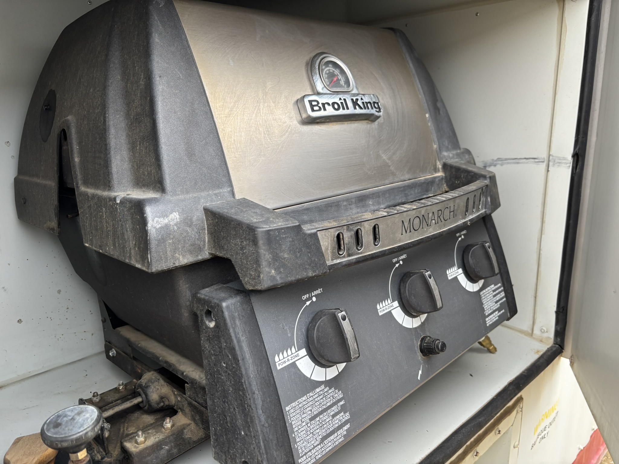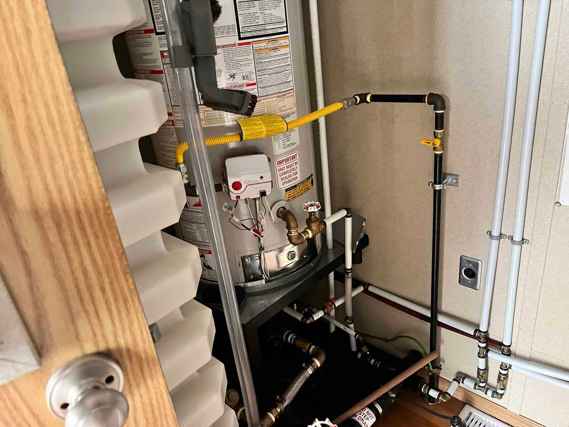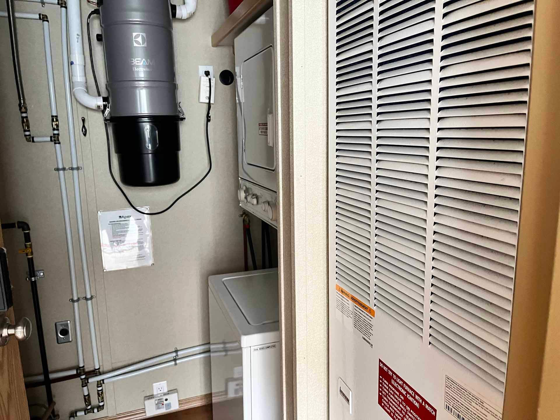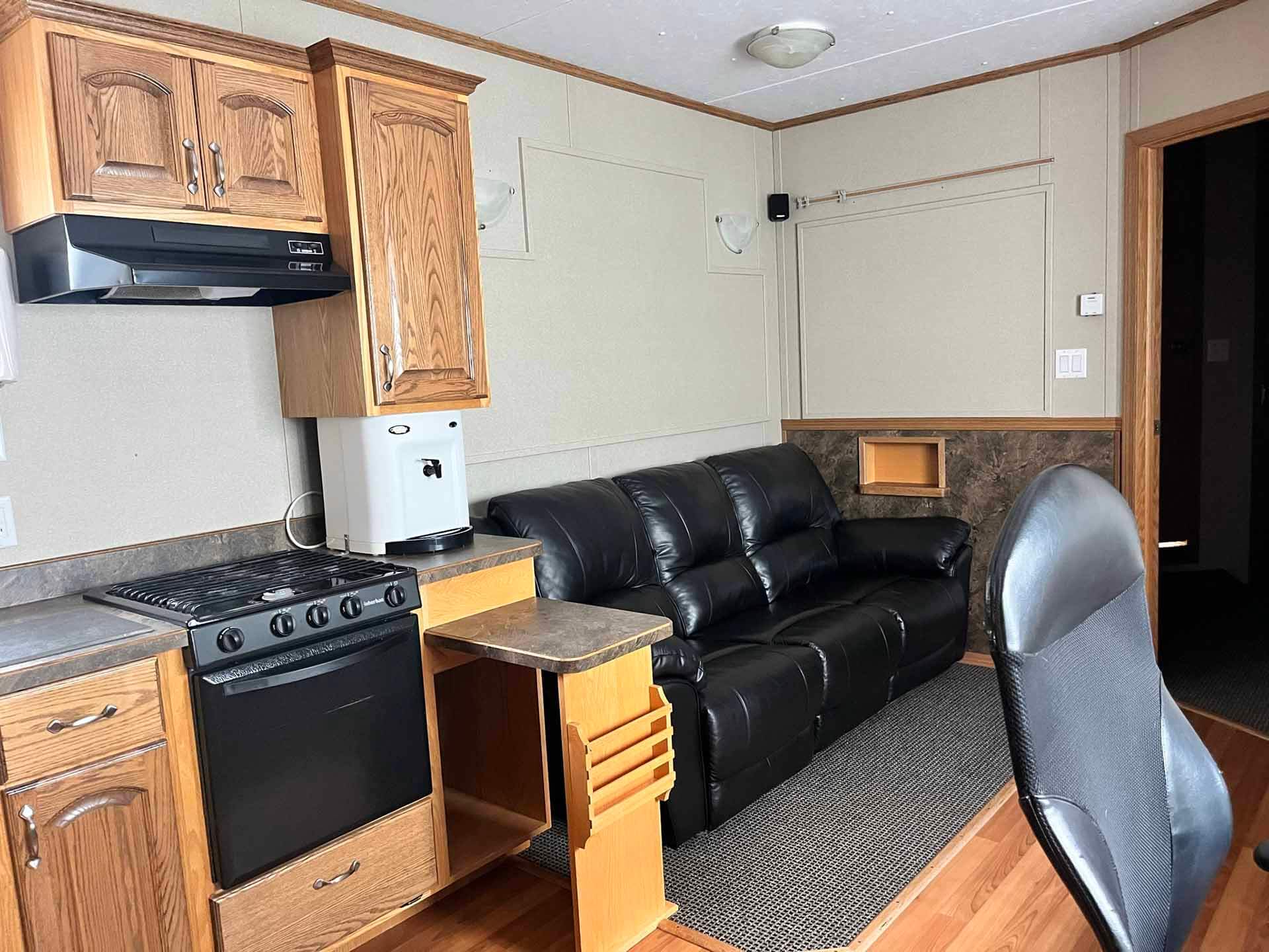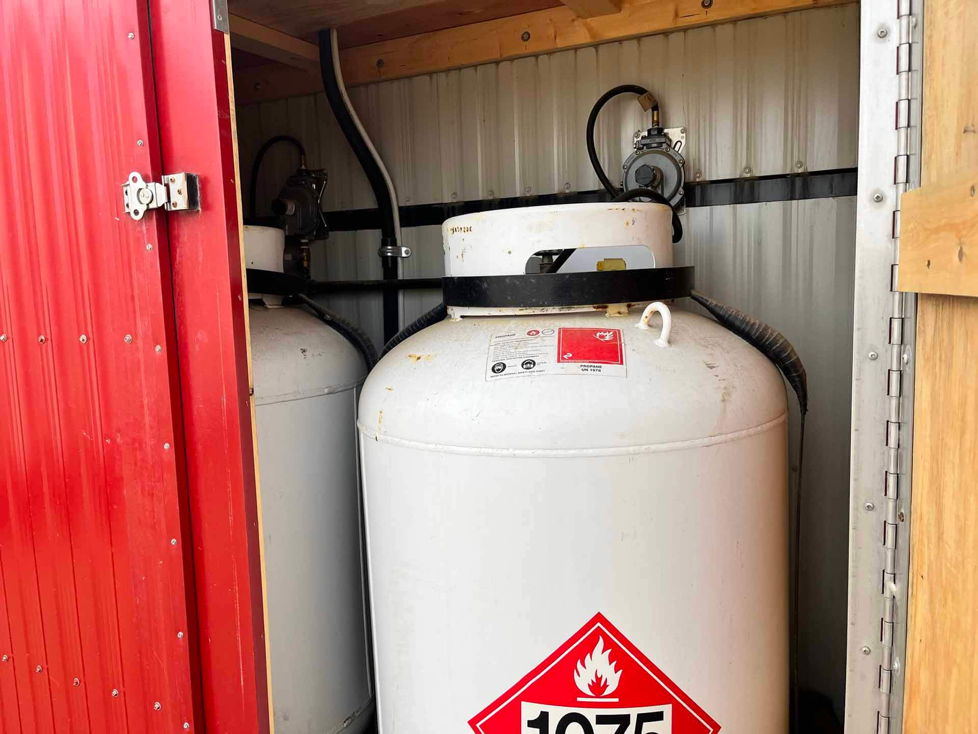 Two 380 liter propane bottles feed the furnace, hot water tank and stove appliances.